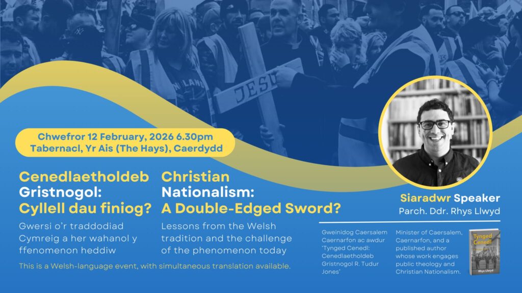 Caerdydd, Ionawr 2026 – Mae Cytûn yn cynnal trafodaeth amserol ar genedlaetholdeb Cristnogol ddydd Mercher 12 Chwefror 2026 am 6.30yh, gan archwilio’r ffenomen fyd-eang a’i pherthynas â thraddodiad Cristnogol Cymru.